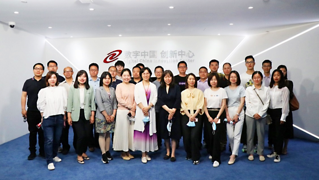在神州信息工作人员的带领下,与会代表首先参观了公司的展厅,全面了解神州信息金融科技业务情况,并重点听取了神州信息在区块链及数字人民币相关场景研发应用的创新案例方面的介绍。